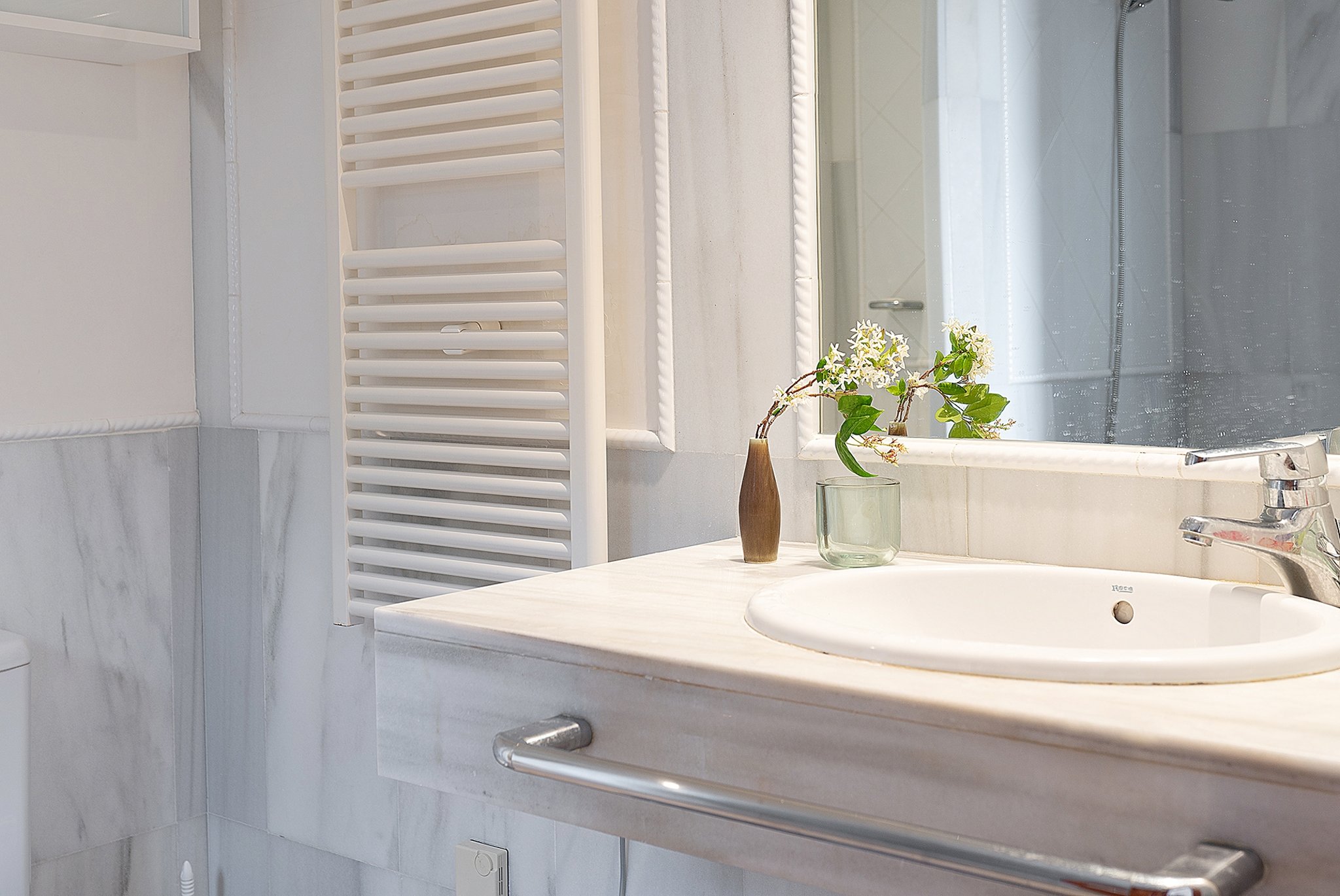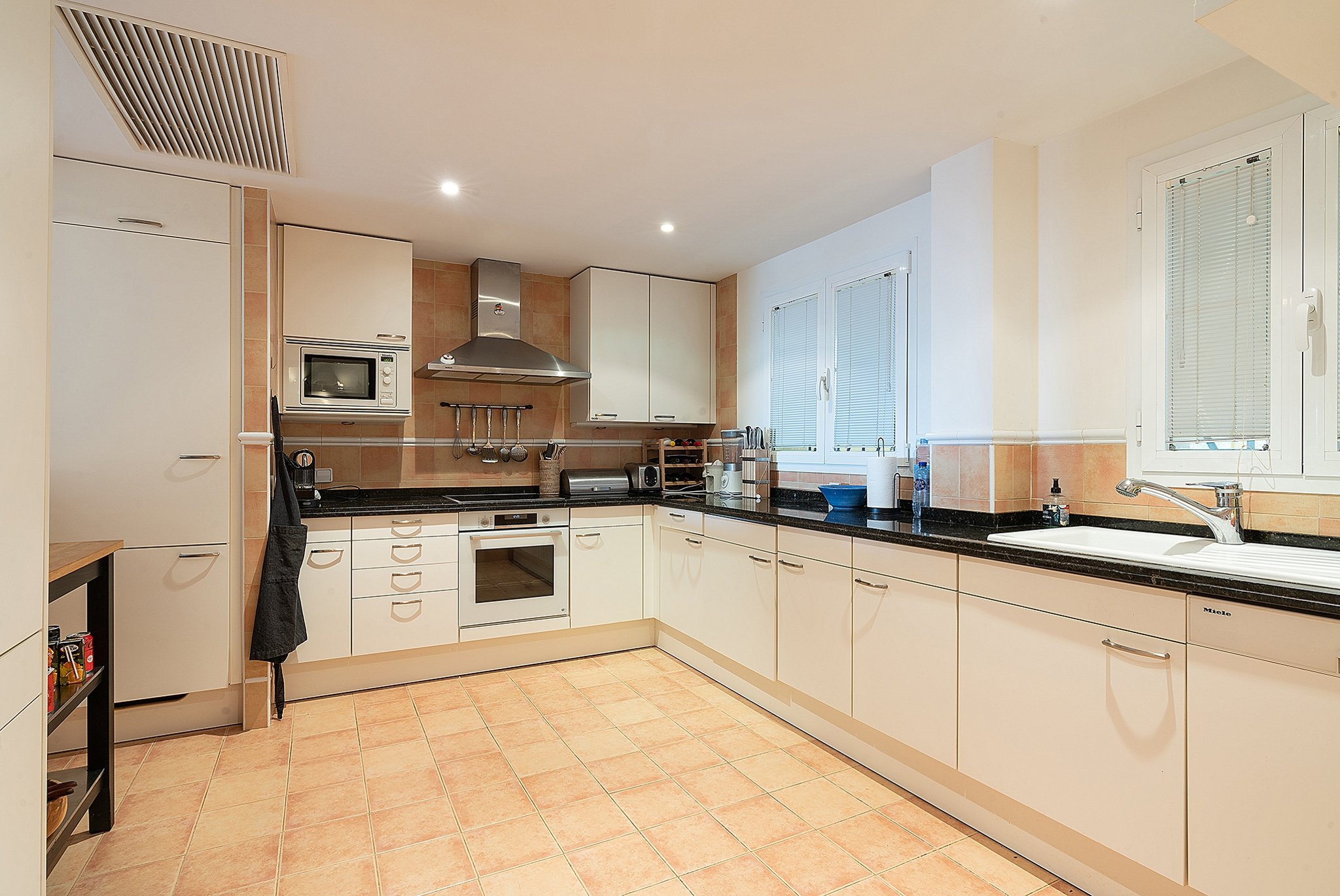 Denna fantastiska lägenhet på bottenvåningen ligger i Sa Vinya Bendinat, ett av de bästa bostadsområdena i området, nära stränderna i Illetas och Real Golf Bendinat. Samhället är välkänt för sina vackra välskötta trädgårdar och tre expansiva pooler, som ger en atmosfär av lugn och flykt från omvärlden. Fastigheten på 113m2 erbjuder två sovrum och 2 badrum, där ett har eget badrum. Dessutom hittar du ett rymligt och välutrustat kök, som är halvöppet och ansluter till ett ljust vardagsrum, vilket skapar en inbjudande atmosfär. Vardagsrummet i sig har en charmig öppen spis, vilket ger en mysig touch till utrymmet. En av de utmärkande egenskaperna hos denna lägenhet på bottenvåningen är den expansiva 40m2 terrassen och 20m2 av trädgården med utsikt över en av de vackert belägna poolerna och utsikt över havet. Detta utomhusområde är perfekt för en härlig stor matplats och relaxavdelning, där du kan varva ner medan du njuter av panoramautsikten.